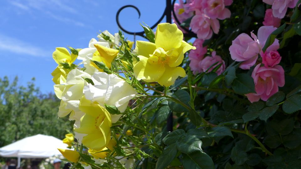 昨日の大雨から一転、青空がひろがり湿度が低く気持ちいい水曜日となりました。先週、サークルの先生からもらった招待券をもって八千代市の京成バラ園に行きました。バラのシーズンには休日で1万人以上、平日でも5,000人の入場者でにぎわうそうです。