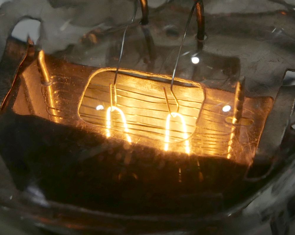 UV202の古い時代はフィラメントが7.5V3.25Aだったそうです。純タングステンでしょうね。
