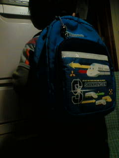 昨日近くの『西松屋』で購入。1999円と2000円以下で嬉しく購入。 「しんかんせん」なら流行りもないだろうと。 たいへん気に入ったSHU。片時も離さず背負っております。