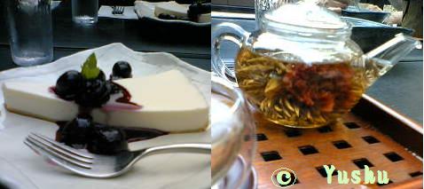 金土日しか営業していないcafeに行きました。 レアチーズケーキと中国茶(花茶) 緑茶に包まれたカーネーションです。見えますか??友人とのお茶の時間。たのしゅうございました。