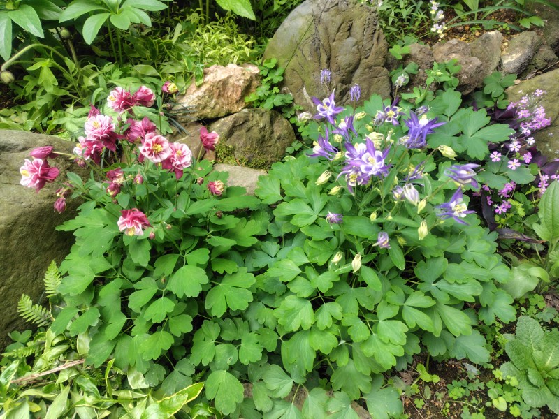 2シーズン目の西洋オダマキ2株が揃って開花しました。左:「ウインキーダブルレッドホワイト」、右:無印昨年11月に植えた「ノラバロー」も来週あたりに咲きそうです。その手前に今春植えたミヤマオダマキは先に終了。そして謎の巨大オダマキは勝手に開花していました。オダマキは期待を裏切らないし、期待しなくても毎年綺麗に咲いてくれるので、本当に優秀な花です。