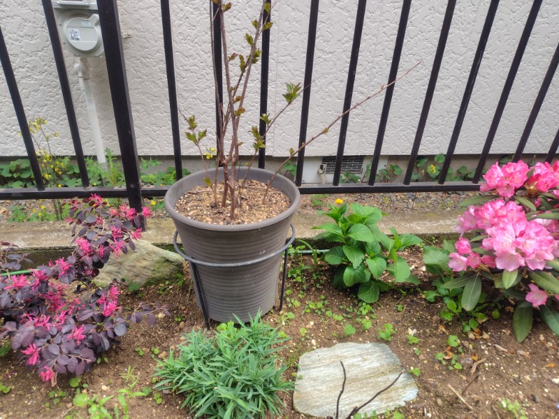 昨年暮れに新たなシンボルツリーとして購入したPWサルスベリ「ブラックパール」(ライトピンク)ですが、「サルスベリの植え付けは暖かくなってから」という鉄則を後から知った為、やむを得ず二重鉢にして冬越しさせていました。そして、春到来…先週ようやく芽吹いてきたので、満を持して地植えすることにしました。タイムカプセルから取り出されたPWポット細い幹の集合体だったので不要な部分を株分けして植え付けました。株分けした方も保険のため鉢植えにして育てることも考えましたが、今の私にはオーバーワークなので潔く処分しました。今年の夏が楽しみです。😄