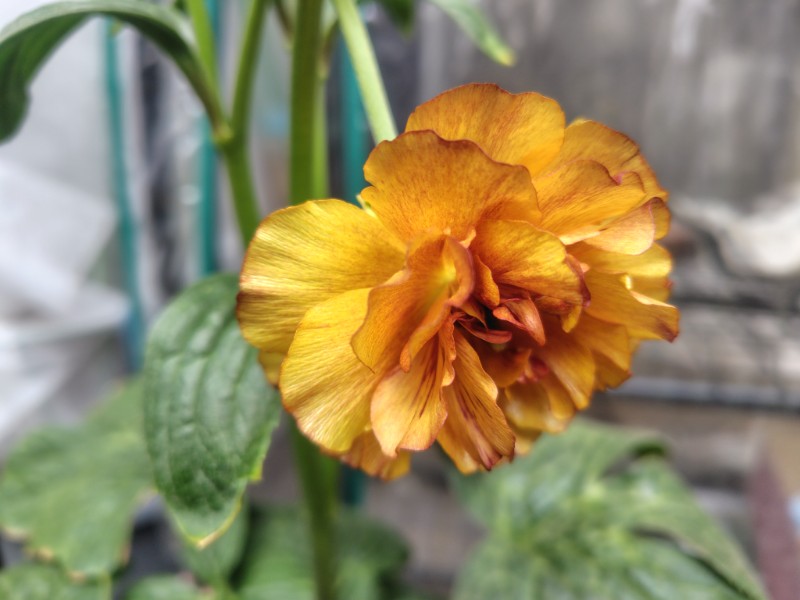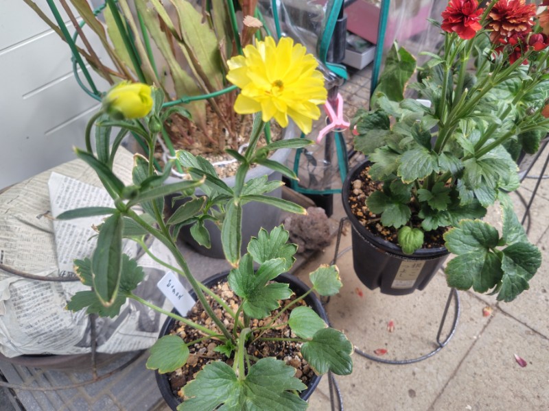 ラナンキュラスラックス6兄弟のうち5番目に「サティロス」が開花しました。個体差があると言われるサティロスですが、きれいなゴールド花が咲きました。🏵️画像が逆さまのように見えるのが気になりますが…実は開花と同時に強風で花茎が折れてしまったのです。😭未開花なのは左端の「ピュタロス」だけになりました。400円ケチってチビ苗を買ったのが災いしましたが、最後のお楽しみということで良しとしましょう。😄