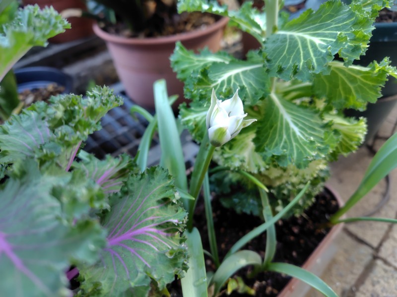 昨年暮れにセール品の球根を買って植え付けた原種チューリップ「ライラックワンダー」が開花しました。が、しかし…何か不自然というか不揃いでカッコ悪いです。😓さらに、もっと酷いのは「ライラックワンダー」より1ヶ月前に植え付けた「リトルビューティー」で…一緒に植えたムスカリ「タッチオブスノー」との共演を待っていたら、タッチオブスノーの特徴であるてっぺんの白い部分が落ち、リトルビューティーも全然咲いて来ない最悪の撮影となりました。😥こちら地植え組はアリウム「ギガンチューム」の蕾が上がって来ました。GWも近づき春咲き球根もラストスパートです。
