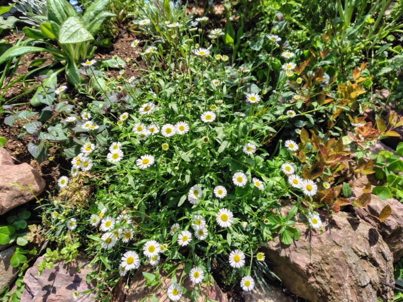 昨年11月に宿根草エリアに植え付けた源平小菊(エリゲロン「カルビンスキアヌス」)が開花しました。低い草丈でこんもり咲くのでボーダー花壇におすすめです。咲き始めなので白花だけですが、徐々に紅白になるはずです。同じく昨秋ボーダーに植えたアジュガ「ディキシーチップ」も開花しました。ランナーが伸びてグランドカバーになることを期待しています。宿根草エリアが急速に賑わってきた今日この頃ですが、喜んでばかりいられない事態が発生しており、明日運命の決断をします。