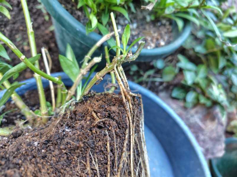間延びした枝が汚くなったので切り戻しして来年に備えようと思いましたが、「来年も不発だったら?」と考えるとバカバカしくなったので地植えすることにしました。