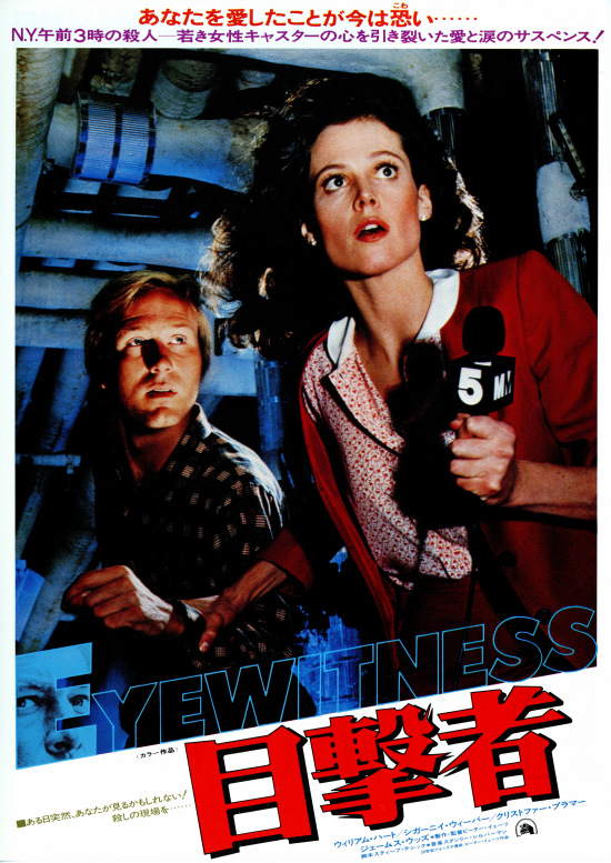 監督はスティーブ・マックィーンの「ブリット」を撮ったピーター・イェーツ主演は「エイリアン」シリーズのシガーニー・ウィーバーに「蜘蛛女のキス」でアカデミー主演男優賞のウィリアム・ハート「サウンド・オブ・ミュージック」のクリストファー・プラマーに、名バイ・プレイヤーでありますジェームズ・ウッズとパメラ・リード「ミリオンダラー・ベイビー」でアカデミー助演男優賞のモーガン・フリーマンこれだけの名監督と名俳優総出演でおくる1981年の作品「目撃者」を見ました。見終わった感想を早速申し上げます…なんぢゃぁコリャサスペンス?全然ハラハラしないっ亡命とかイスラエルとかユダヤ人問題とか、もしや政治系全然わからんっベトナム帰還兵と美人レポーターの恋男の方は半ストーカーぢゃんっとにかく、美人レポーターにお熱なビル清掃員が、職場で起きた殺人事件に巻き込まれるんですが、このネタを基に…これ以上書くことがありません
