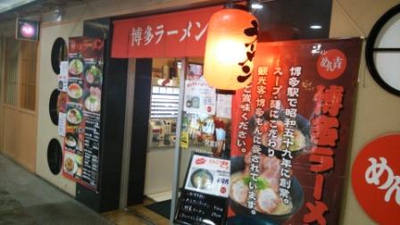 さてさて…飲み会も終わりまして、明日は早いので家に帰ろうっと思いましたが〆の一食をと思いまして立ち寄ったのがこのお店でした。JR博多駅の筑紫口から一旦外に出て左側のビルにありますラーメン屋さん早速暖簾をくぐります…券売機があったので、基本のラーメンの食券を買いブツを待ちます。出て来ました頂きますっ博多駅だけにラーメンは豚骨スープですが、お味の方はかなりライト…というか薄い。豚骨臭はそれなりにするのですが、コクがなく薄いかんじ…十数分前まで居酒屋にいたせいか薄く感じるのでしょーかおもわずカウンターにあるからしめんたい高菜に手を伸ばそうと思いましたら…ひっそりたたずむにんにく醤油を発見kつささっと垂らしまして醤油豚骨にしましたとさっさてっと帰りまするです因みに明日は朝6時に隣のインビス クラに集合です…早ーよ