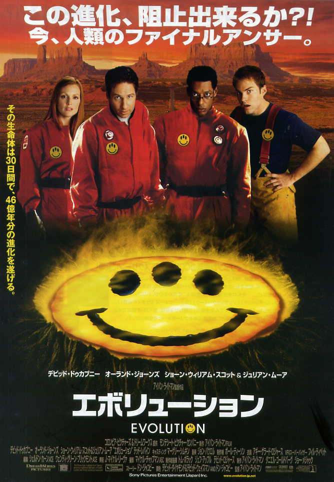 アリゾナ州の砂漠に隕石が落下中に存在した未知の細胞が脅威の速さで進化を遂げ、人々を襲う作品ですっっと書きましたが…ケッコウなSF<コメディな比率の内容「ゴーストバスターズ」の監督が幽霊をエイリアンに変えただけの作品を作った感じでして、バスターズの一人だったダン・アクロイドが州知事役で登場するというお遊びっぷりだし、当時「X-ファイル」で有名だったデイヴィッド・ドゥカヴニーがエイリアンと戦う大学教授役でセルフパロディだしと…ケッコウやらかしてます。ジュリアン・ムーアに至ってはセンス0な元素記号のプリントTシャツで登場で…もぉいいや頭すっからかんでのお気楽鑑賞向きな作品ですので、特段の感想はございません。劇中で流れていたワイルド・チェリーのプレイ・ザット・ファンキー・ミュージックのとおりファンキーに行こうぜな作品であります