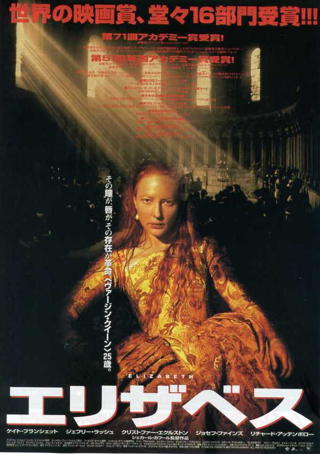 数多くの作品でお見かけしているケイト・ブランシェットさん。意外にも純主演作品を観たのはコレが初めてなんです作品はあまりにも有名な英国女王のお話です。1554年の英国、カトリック(旧教)とプロテスタント(新教)の宗教抗争が激化するなか、王の妾の子として生まれるも若くしてイングランド女王に即位したエリザベス緊迫した隣国との関係や戦争回避の政略結婚、カトリック最高権力者の謀略や身内の謀反など、様々な困難が彼女に振りかかるのですが…ってな史実映画であります。立場としてままならぬ恋愛もありまして…最後は「私は結婚します、英国と。」のセリフで、国に身をささげた女王を描ききりました豪華な衣装や背景も相成りまして、絢爛でもあり荘厳たる英国王室を歴史とともに観てとれ素晴らしき作品を堪能させていただきました。早いとこ続編観なきゃ