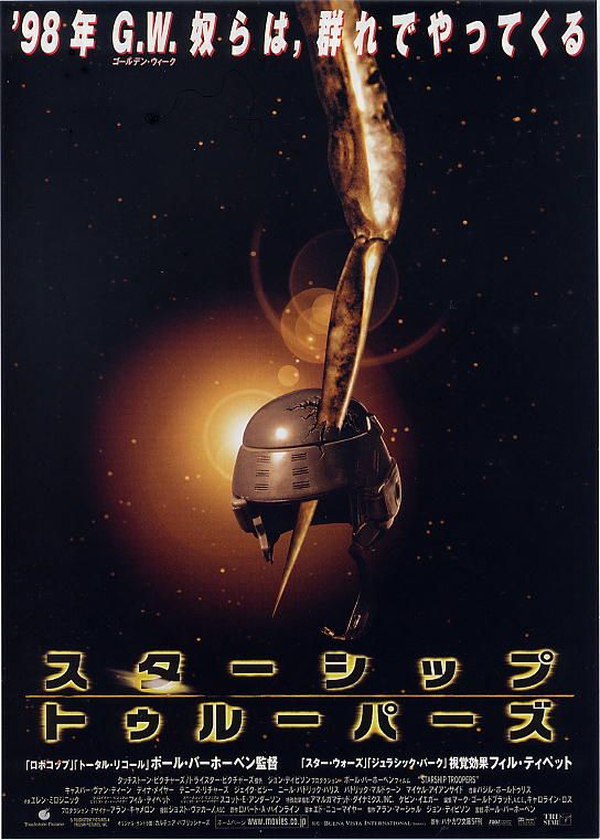 この作品、ロバート・A・ハインラインの超有名なSF小説「宇宙の戦士」ってのが原作であります詳しくは読んでませんが、ワタクシが中高生の頃にはすでに書店に並んでいたと思われ…そんな由緒ある原作の映画化で昔に観た記憶はあるのですが、久しぶりに放送されましたので観ることにしましたお話は銀河系全体に入植を始めた人類が、そこで遭遇した先住の昆虫型の宇宙生物と全面戦争になっちゃったって設定でスタート両親の反対を押し切って地球連邦軍に入隊したジョニー・リコは、機動歩兵隊へ配属され、訓練キャンプでしごかれる日々を送りますそしてリコの恋人カルメン・イバネスも宇宙戦艦のパイロットを目指し宇宙海軍アカデミーに入学…リコの友人で超能力の素質のあるカールは情報部へ配属され、リコに密かな想いをよせるデイジーも機動歩兵部隊に入隊しと…ジョニー・リコとその仲間は、軍属としてそれぞれの道を歩み、兵士として成長していきますそんな4人が宇宙生物の母星に侵攻する…ってな展開でよろしいかな原作の「宇宙の戦士」を知ってる人は、コノ作品のキモがパワードスーツであることは重々承知アノ「機動戦士ガンダム」にも影響を与えたと言われている人型の兵器ですが…映画には全然出てきません私的な感想でよろしければ、作品の評価はコレが全て…ガンダム世代のワタクシにとってコレは痛すぎなんか戦意高揚的な作風やエグい殺され方をする歩兵の方々など、ポールバーホーベン監督らしい演出は今作に限ってはマイナスでして、久しぶりの鑑賞も爽快おさらい感はなくムムムっな感じです続編の2・3作目も録画しちゃったけど…どーしましょうかね
