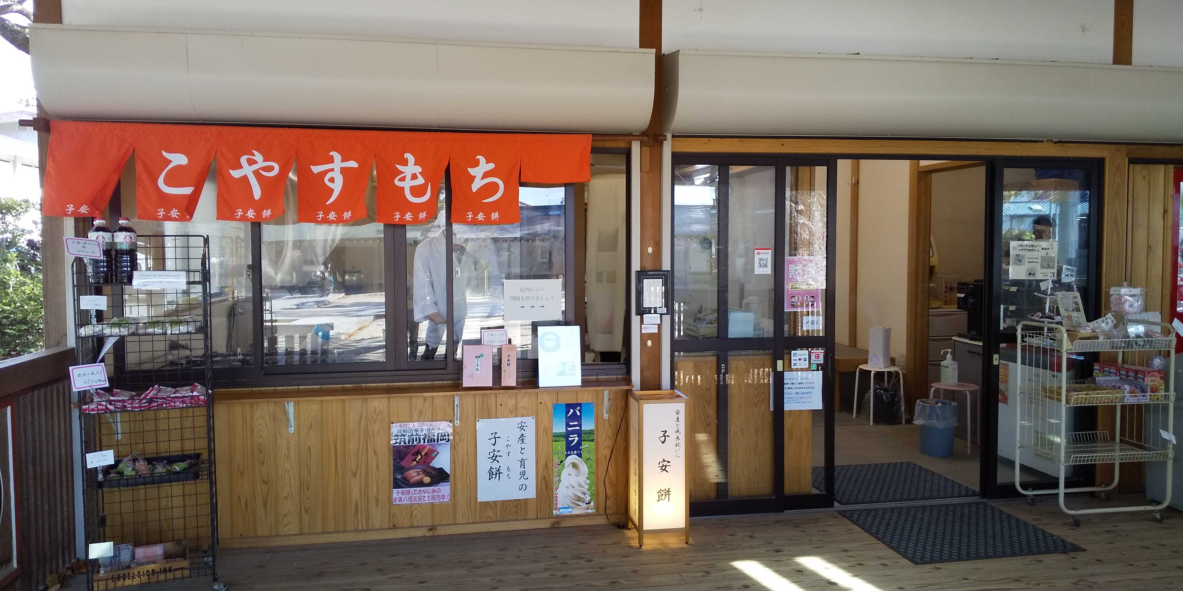 お昼ご飯を食べまして、ダイキョーバリュー弥永店に行きました目的ははぎトッツォしかし…人気商品(しかも別棟でお店まで出来ていた)で30分待ちなので夜ご飯の食材を買って帰路に…でも甘いものが食べたくて寄った場所がコチラでした宇美町の宇美八幡宮、宇美八幡茶屋で子安餅(こやすもち)を食べよーってコトで立ち寄りました受付でお持ち帰り5個と店内で食べる2個を注文、席に着きます。お席に備え付けのお茶を注ぎまして、出てきた焼きたての子安餅をパックンチョです焼きたてのお餅は外がパリパリ…焼き立てならではのモノです中は餡が…アッチッチです美味しいがなーーーダイキョーバリューのはぎトッツォを十分カヴァーできる老舗の一品でした★☆★☆★☆★☆★☆★☆★☆★☆★☆★☆★☆★☆★☆★☆★☆★☆★☆★☆★☆★☆★☆★☆平成28年1月3日の午後…新年明けましておめでとうございます本年もよろしくお願いいたします…っということで平成28年の第一発目は宇美町にあります有名な宇美八幡宮からお届けです。いわゆる三社参りでやってきまして新年のお詣りを済ませたワタクシ達家族なんですが、昼の3時という中途半端な時間帯にお腹が空いてきまして…宇美八幡ならばヤッパこれでしょと並んだのがコチラでした子安餅…ココに来たらヤッパ食べないとねっと列に並びます。お詣りでも並び…子安餅でも並び…なんですが仕方ありません自動で焼きあがる餅を見ながら、6秒で1個焼けてるんで1分で10個…1時間で600個…1個単価は幾らだと1日の利益はどれぐらいかなどと考えてたら(お店の方、もーしわけない)ワタクシ達家族の番にっお餅帰り…ぢゃないお持ち帰り用とスグ食べる用で買い分けまして…頂きますっ焼き型の中でじっくりで焼かれたお餅は外がぱりぱり香ばしい…この食感は焼き立てぢゃないと楽しめませんなかはたっぷりなつぶ餡でしっとりです。実は宇美八幡茶屋が新しくなっているとは知らず、綺麗になった新店舗を見たのは初めてっ昔の反対側に建っていた茶屋を思い出しながら…二人の高校生になった息子達を眺め過ぎた時代を懐かしみましたさて無事に三社参りも終わりまして今から…新年会1月の3日から飲むのかよー