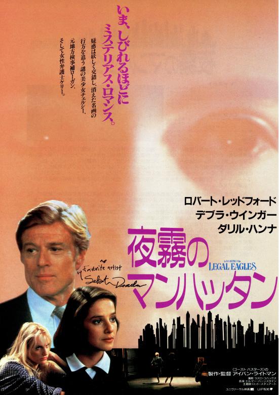 ロバート・レッドフォード主演の1986年公開、「夜霧のハウスマヌカン…ぢゃなかったマンハッタン」を久しぶりに観ました。1968年のニューヨーク、著名な画家の屋敷が炎に包まれ画家は焼死し多くの作品が消失してしまいますそれから18年後…消失したとされていた作品が盗難未遂に遭い、逮捕されたのは画家の実娘チェルシー。絵の正当な所有権は自分にあると主張する彼女と弁護を担当する女性弁護士ケリーは、真相を探るため強引な方法で普段は敵対している地方検事補のローガンに助力を求めるのですが…ってなお話。地方検事補ローガンをレッドフォード、女弁護士ケリーをデブラ・ウィンガー、画家の娘をダリル・ハンナが演じております。この作品でレッドフォードはやり手の検事補を演じているのですが…遣り手というかヤリ手というかバツ一愛娘持ちなのに、依頼人と寝ちゃうは同僚弁護士とは恋仲になっちゃうはとヤリたい放題原題は「LEGAL EAGLES」って法のワシ(西洋圏でワシって特殊な意味があんだろーけど…)なんですが、法の種馬の方が…と思わずにはいられないプレイボーイぶりまぁ作品はラブロマンスにコメディやサスペンスの要素を程よくミックスした仕上がりになっておりまして、渋い二枚目の印象があるレッドフォードの意外性キャラを受け入れがたいファン以外には面白い作品だったと思います…よ