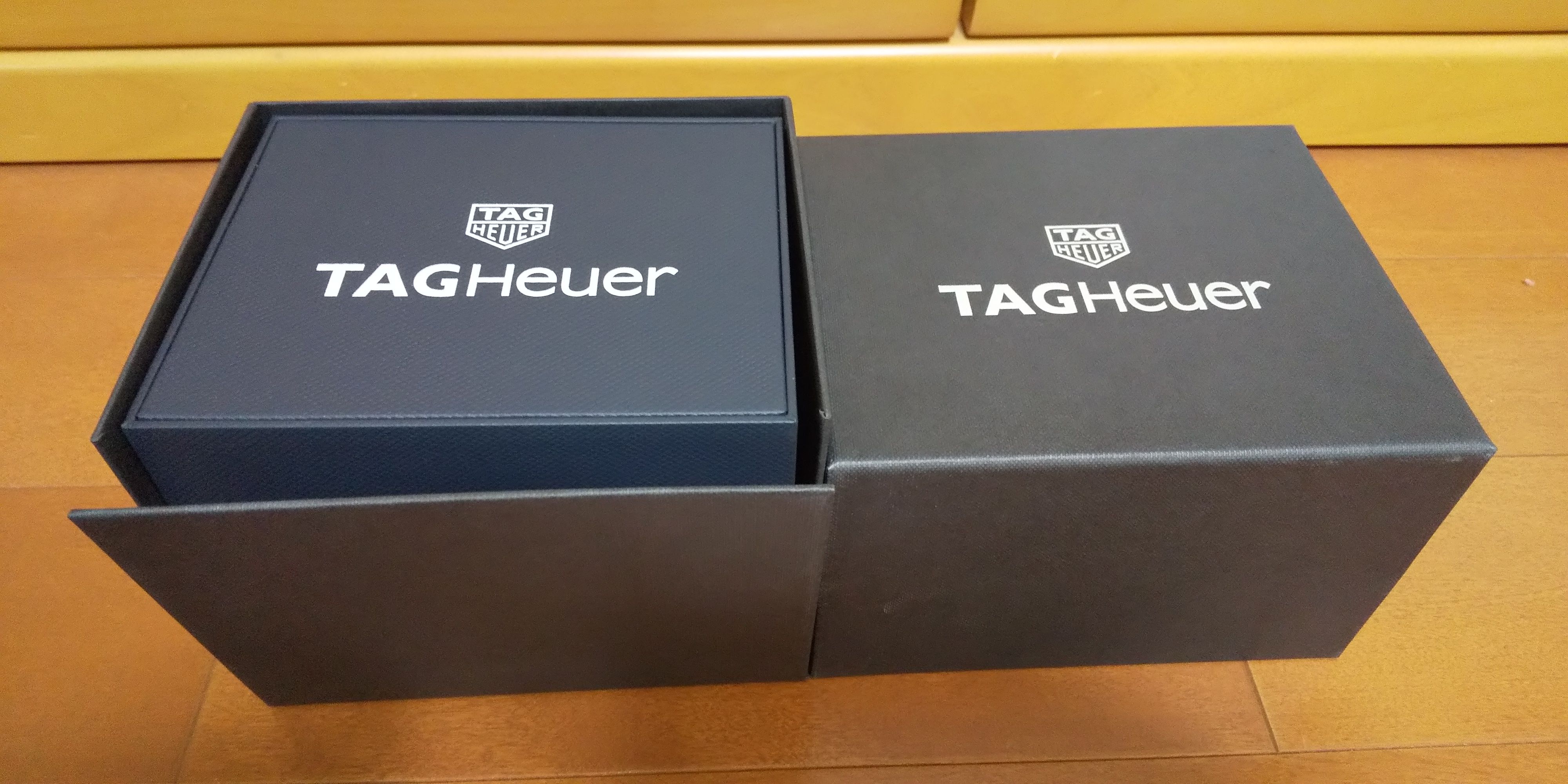 消費税増税前に…時計をこーて(買って)しまいました因みに衝動買いではありませんワタクシは、ブライトリングのオールドナビタイマーⅡとクロノアヴェンジャー、タグ・ホイヤーのカレラ・タキメータークロノグラフ(キャリバー16)を所有しているんですが、いずれもクロノグラフ腕にはめますと映えるんですが…それ故、お葬式などにはちょっと不相応ですなのでシンプルな1本が欲しかったのでありますで、今回購入したのがコレ⌚タグ・ホイヤー カレラ キャリバー5です。見ての通りシンプルなデザイン時・分・秒針のみの3針モデル。派手さはありませんが万能なデザインで、ワタクシの希望に合った腕時計ですバックスケルトンは見えない部分の遊び心ってコトでお洒落でイイですよねーはめてみますと…んーイイ感じですでもコレ、もしかしたら息子の就職祝いでプレゼントしよーかなっと思ってますなのであまり装着せずに大切にないないしてとおこー…今どきの子ってあんまし腕時計とかに関心ないかーいらなかったらモチロン、ワタクシがコレクションの一つで左腕のお供にします