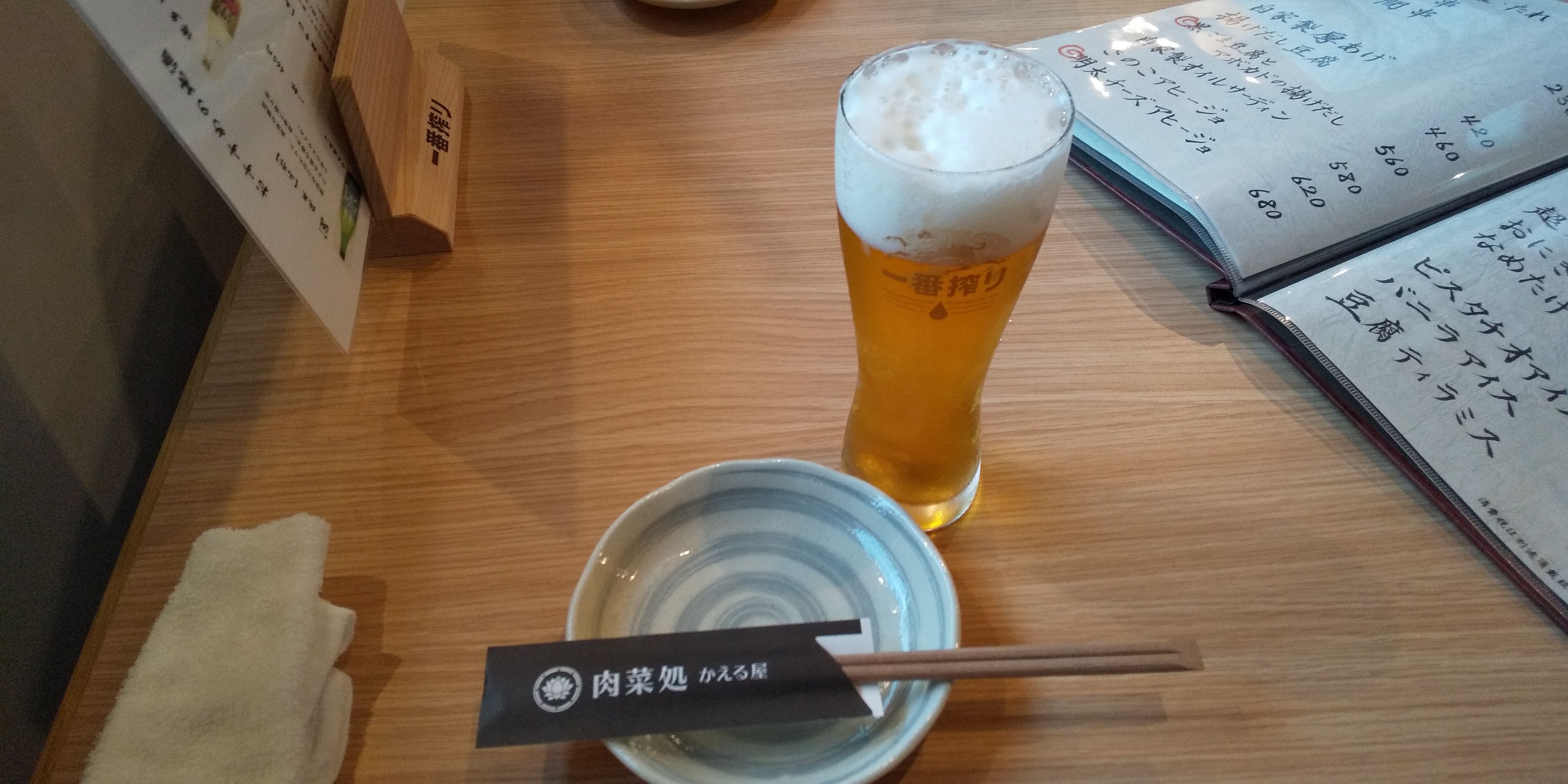 夕方の6時、開店時間ジャストにお店になだれ込みまして…皆様、生ビールで乾杯です