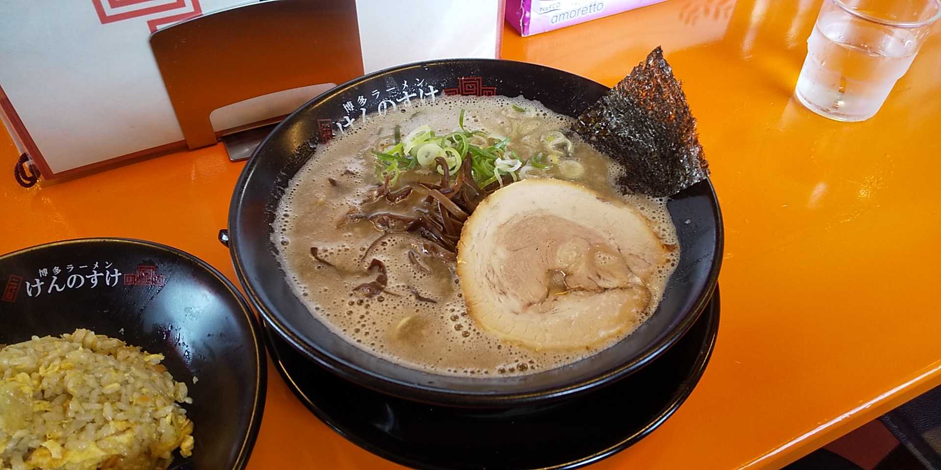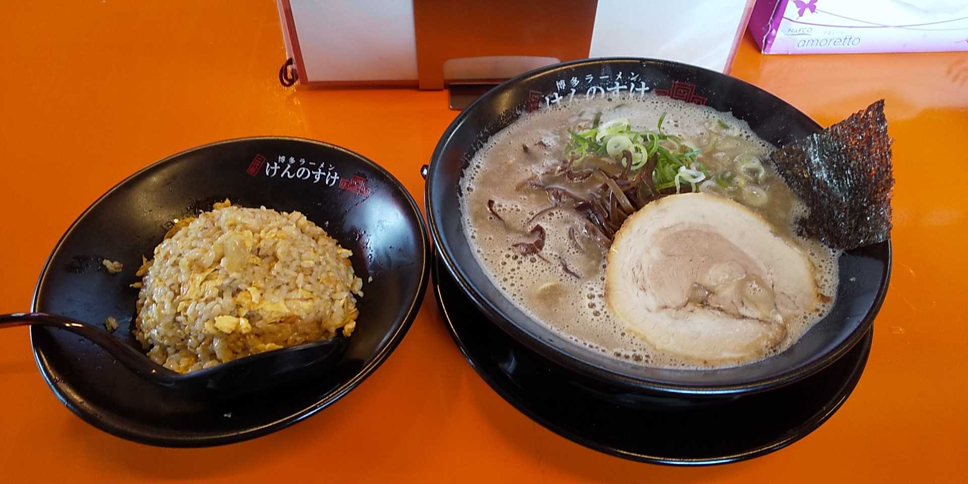 羽釜とんこつが売りのラーメンにプラスできるお得なセットで半チャーハンを注文しました。