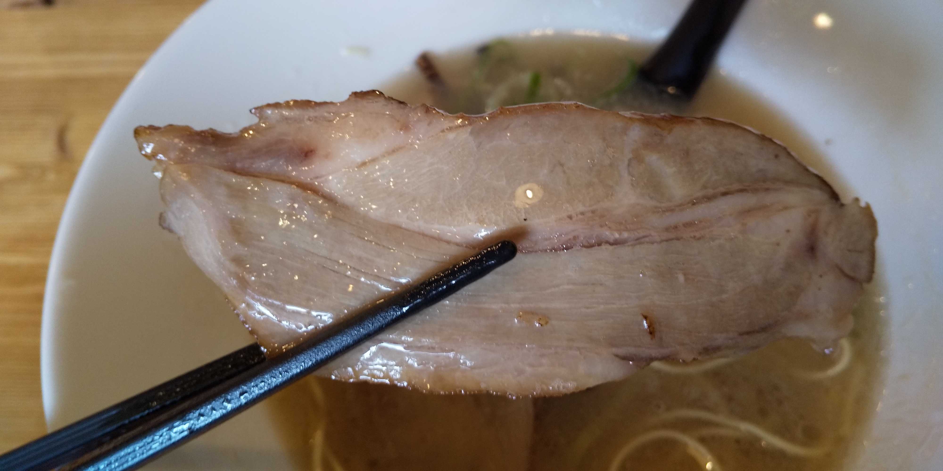 トッピングはキクラゲにネギ、薄いながらも長くて大きなチャーシューです。