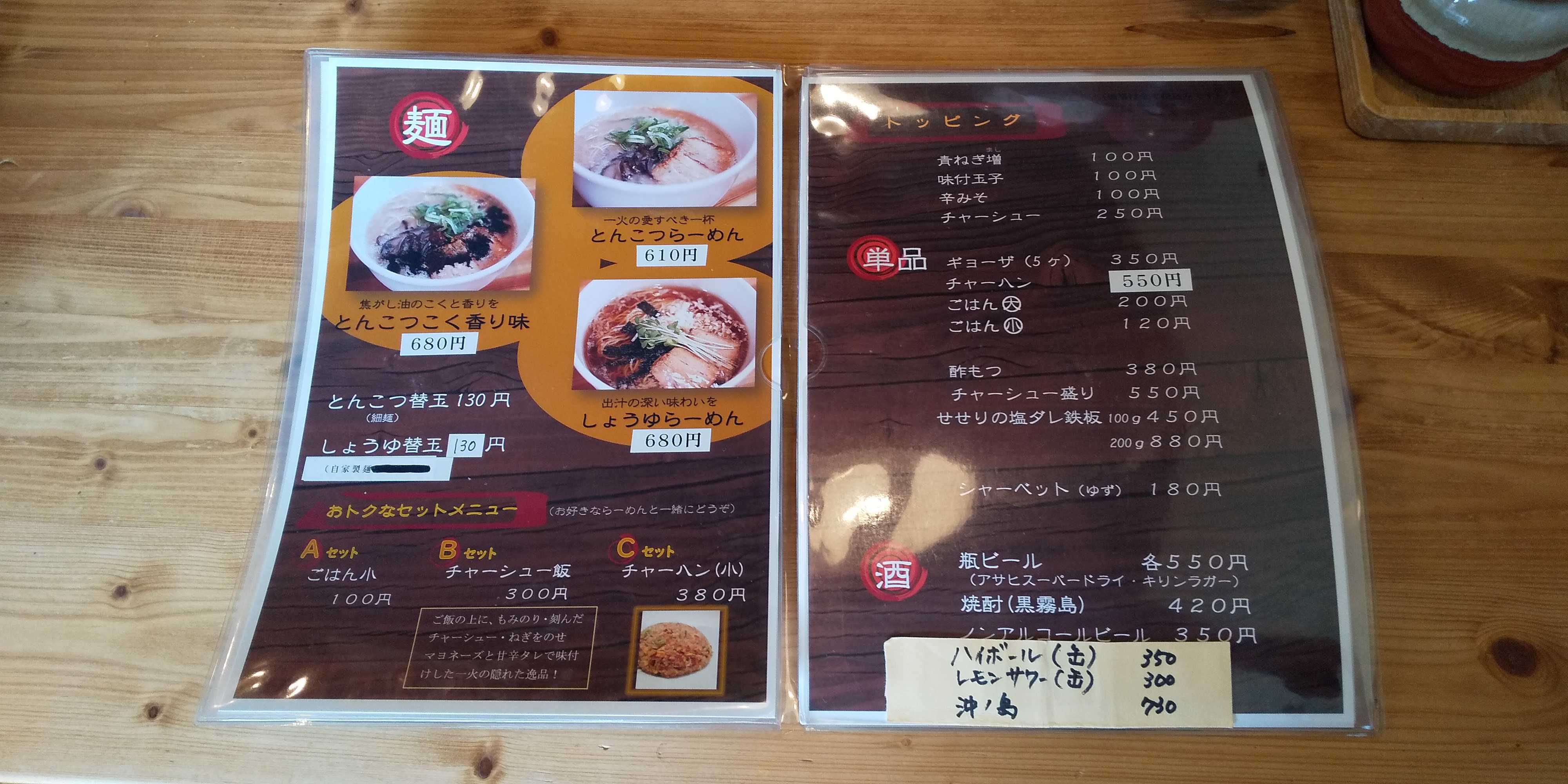 ラーメンのスープはとんこつ、とんこつこく香り味、しょうゆの3種類あるよーです。