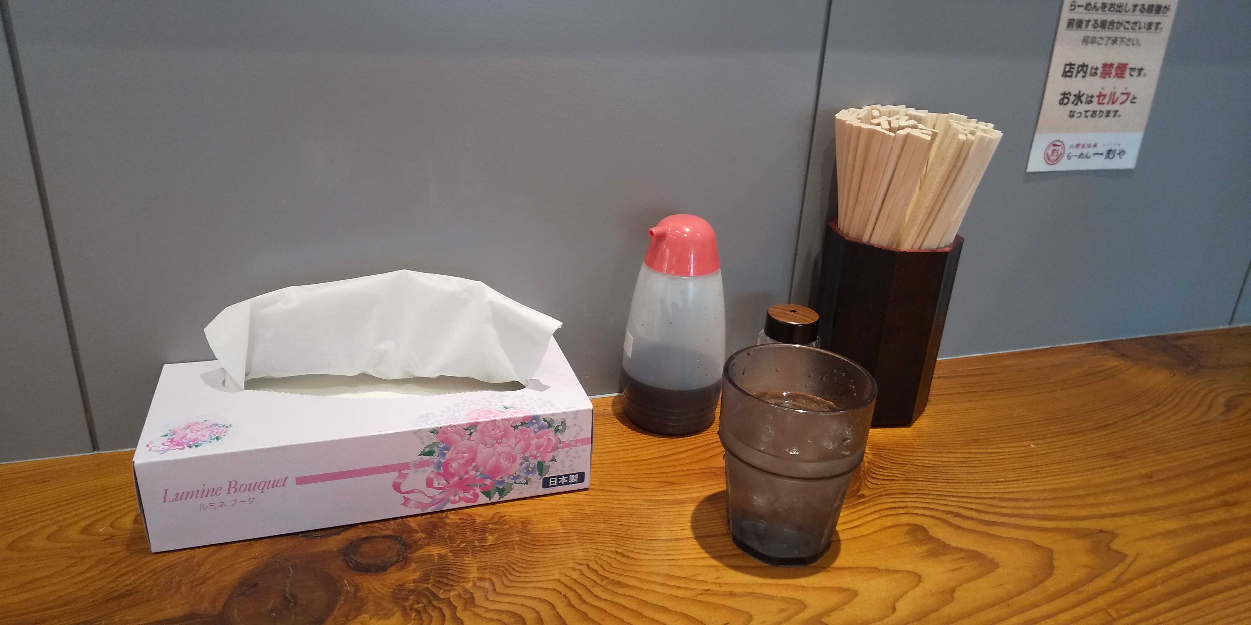 必要最小限の卓上…ワタクシはアレやコレやかけない、お店が出した丼を喰らう性分ですが、色々味付けする民にとっては物足りない
