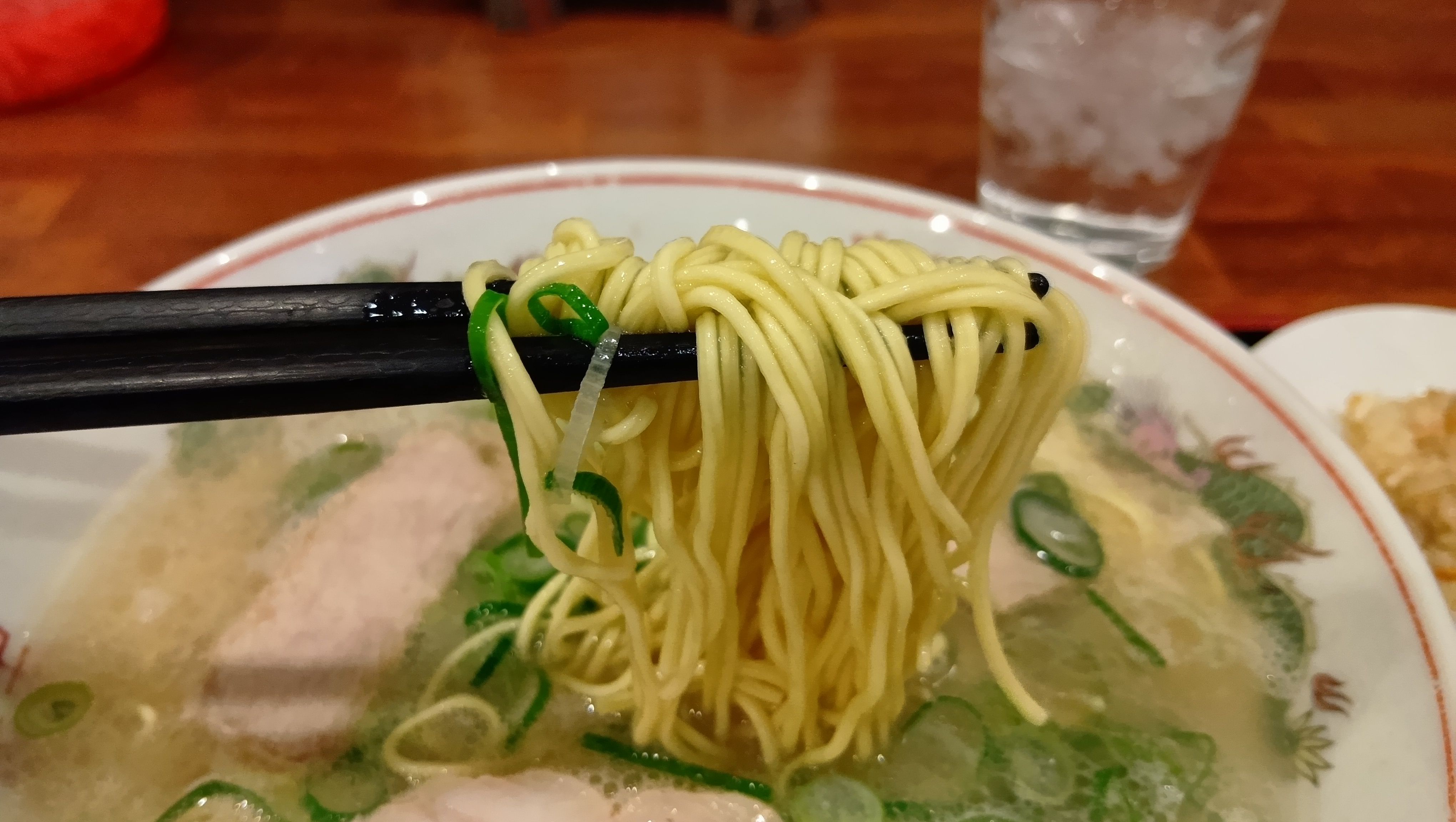 麺はストレートの細、茹で加減は聞かれなかったのでどんな感じかなと思ってましたらば、固さがちょびっと残りながらもモチッと感がありましていイてす