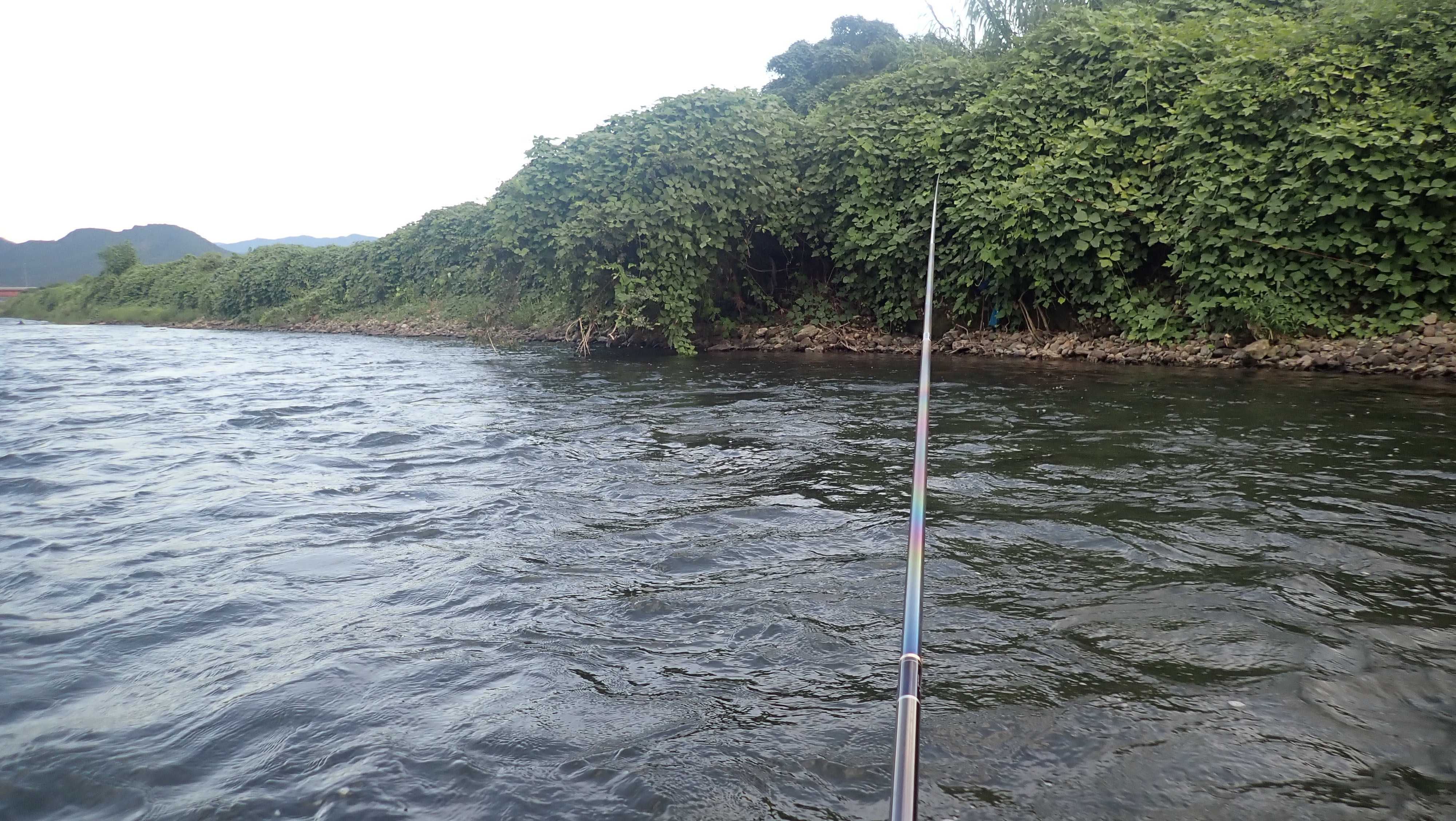鮎は沢山いるので、ジーと待っている方が掛かるみたいです。ウィンク