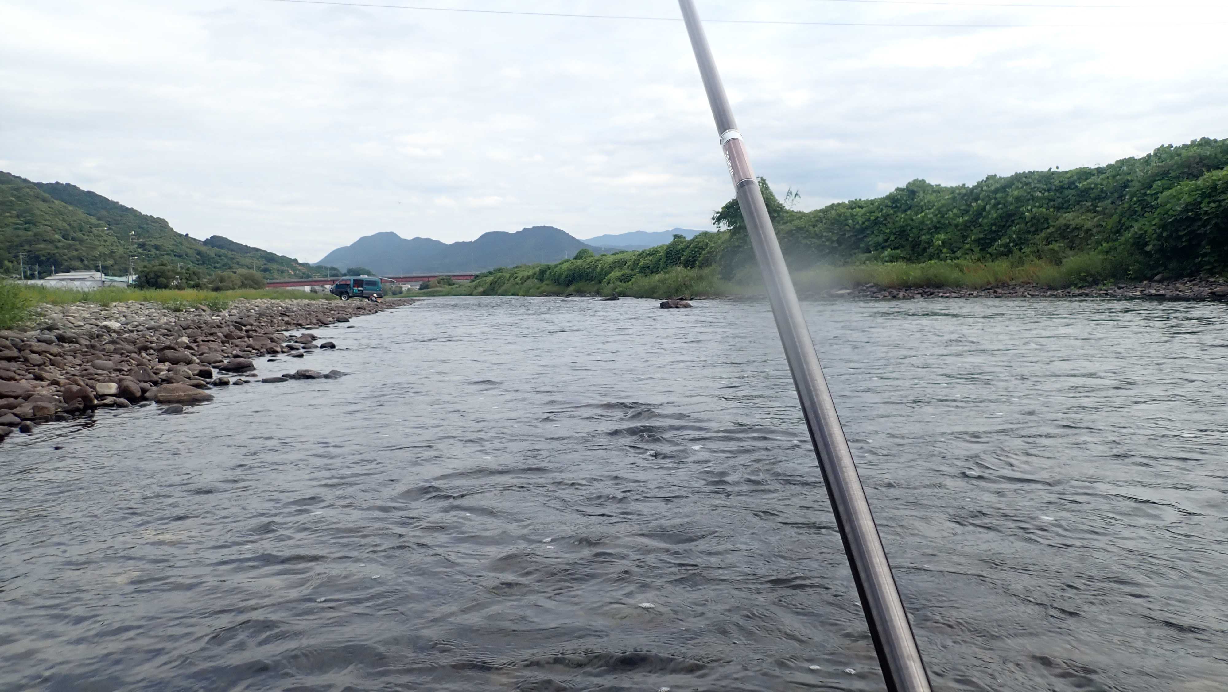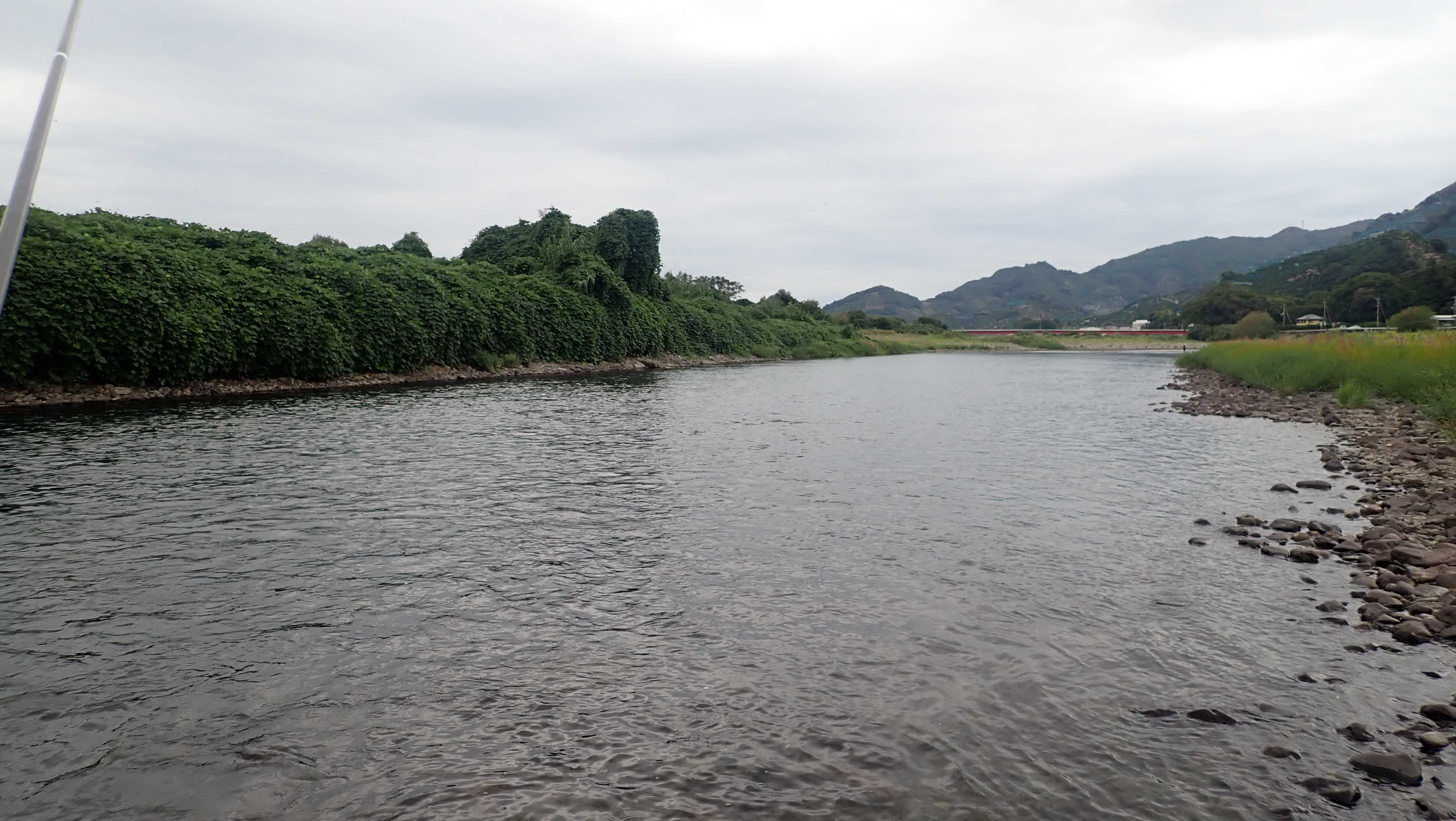 徹底して岸から後ろに下がり、右岸のへチを泳がす。