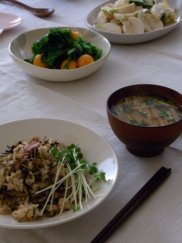 いやもう、何年越しの念願だろうか、山梨に居るころから作りたいと思い続けて機会がなく今に至ってしまったのです。憧れの味噌作り、ついに念願叶う!!でもねこの日は、単なる味噌作りでは終わらない、ほんとうーーに素敵な一日だったのです。なんせヴィーガンランチ&スイーツ付きっ!味噌作りを主催してくれたのは、ユニットを組んでるフィドル弾きのhazelさん。http://selfhealing-diary.cocolog-nifty.com/macrobiotics/この方、半端なく料理美味いです!!ヴィーガンランチ。これがもうめちゃくちゃ美味しい。↓金柑と菜の花の蒸しもの。私はこれを食して中華街にセイロを買いに走りたくなりました。↓柿酢とマスタードを使った和え物。かぶと・・・えっと何が入ってたっけな。。白菜?ともかく美味しい~。作り方をきいのたので翌日似たようなモノを作ってみました♪↓そして優しい味の、ごはん♪ごぼうの香ばしさが引き立ちます。桜の塩漬けやかいわれと一緒に口に入れるとバリエーションが楽しめます。↓なんとデザート付!寒天入りのケーキ。不思議な触感。去年庭で採れたというブラックベリー(だっけ?)がアクセントになってます。調和してる。至福のお食事タイム。この日はね、私は飛び入りで、もともとhazelさんのお友達とそのまたお友達がいらっしゃる予定だったのですがこれがまたほんっとに楽しい方々で!初対面の方とお食事があると気づかれするかも・・なんて懸念は一瞬で吹き飛ぶ楽しさでした。偶然にも横浜の方。一日中笑って過ごしたといっても過言でない。そんな笑いながら作った味噌の一部始終をお見せしよう。↓hazelさんが前の晩から付けといてくれた豆。豆って、かわいい。。。。↓煮ます。圧力なべだと20分くらい?10分だっけ?↓その間に麹と塩をMIX↓煮た豆を3回くらいに分けつつ、すり鉢でつぶします。このすりこぎとすり鉢はhazel家に伝わる家宝(過言)。だいぶつぶれてきました。↓ペースト状になった豆と麹塩mixと混ぜ合わせます。↓空気が入らないようにべちべちしてから容器にべちっと入れ込みます。平らにしてラップ。後はおうちで重しを乗せます。(私はちょうど岩塩があったのでそれを乗せました。)こういう手工業をしている間というのは、伝統的に女たちはおしゃべりをしていたのでしょう。この日の私たちもたわいもないことをずーっと話していましたがハイジの話になり、クララが昔は「本間くらこ」だったこととかハイジが楓だったこととかになりそのうち「ゼーゼマンさん」って誰だっけという話になり謎のままでしたが、後日姉に訊いたところ「クララのお父さんじゃない?」と即答。つまり「本間」に当たる部分がゼーゼマンだったようです。ブログの中で報告しておきます!MさんJさん!さてお味噌作りの後は、またスイーツタイム♪↓りんごと、くるみなどのナッツのケーキ(?ケーキなのかしら)すーごく、体が求めてる味でした。少しで満足しちゃった。そしてね。この後は待望の子猫タイムですよぅっ実はhazelさんちったら、去年の秋から子猫がいるんですよっっしかも2匹♪ 姉妹の子猫です。そろそろ中猫だろうと思っていたけど、実際はまだまだあどけなさがあって、小学生な感じ。子猫の大きいのみたいな(笑)猫好きの方、申し訳ありません。遊ぶのに夢中で写真撮ってません。猫とこんなに遊んだの、久しぶりだったよ。手がまだ柔らかいの。ちっちゃくて、ふにゃっとしてる。抱っこもしちゃったけどちっちゃい~♪ああーーもう幸せーーっ股の下に入り込むのが好きなやつらでした(笑)妊婦としましては、ほんとは電車が混む前に帰ろうと思ってたんですけど、この時点でどっぷり日は暮れてしまってました。楽しすぎて帰れなかったよ~っこんな誘惑に弱いママにまるちゃんはしっかりついてきてます。きっと忙しママでも大丈夫な子が生まれるだろうと勝手なことを思うww奇しくもこの日は新月。新月に仕込んだお味噌、どんな味になるか楽しみだな♪解禁の頃は10月、家族が増えてるんだね。うふふ。で。半月後の満月には、ライブです!hazelさんと、今月の満ちる○ライブを一緒にお届けします!フィドルとハープとうたの夜です。●3/20(日)夜8時より●珈琲文明にて●満ちる○ライブvol.35(産休前最後のライブになりまする)●出演:星と樹のうた フィドル:hazel / 歌とハープ:弓歌ケルトな曲と、そうでない曲をお届けしまーす♪では長々と失礼しました!