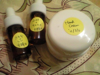 花粉症以外の方には大変申し訳ないですが、今月のjewels earth通信もアロマスプレーも花粉症スペシャルになっております。まずはアロマスプレー詳細から。●ローズマリー ●ラベンダー ●ベルガモットミント ●ユーカリラジアータ ●ティートリー ●青森ひば ●メリッサ ●カモマイルジャーマン(おかむらさき溶解) ●マンダリン ●ユーカリグロブルス なんかこう、すっきりする、けれどコクはない感じな仕上がりです。 実用使用で。 jewels earth通信も花粉症対策です。 点鼻に使えるアロマとか、ぐぅたら使用とかも載ってます。 ご来店の際はぜひご覧ください。 WEBでも読めます。 http://jewelsearth.noor.jp/1103.htmlで、自分用のも当然作りますよ。この数年お世話になってる点鼻アロマ、お気に入りです。↓点鼻用水精油ミックス2種(カモマイルジャーマン+ラベンダー、ユーカリ+サイプレス)と、ハンドクリーム(治癒力にかなり本気)(ハーバルベーシックオイル、小麦胚芽油、ねんどのクリーム、ユーカリの森のミツロウ、精油:ネロリ/ベンゾイン/サンダルウッド/ラベンダー)最近作ったアロマモノといえば妊娠線予防オイル。小麦胚芽油+ハーバルベーシックオイルに精油(ネロリ、マンダリン、ラベンダー)このブレンドは王道かな。