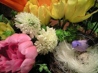 久しぶりに会いたかったのです。素敵女子、sophlのsachi先生。しかも会場は横浜の洋館。これまた素敵女子のスイーツ付き。13日の予定だったのだけど、ちょっと疲れが出てお腹が張ってしまったので、妊婦としては無理できない。こういう時こそ素敵なことに集中したいなあって思ったんだけれど。さすがに前夜のキャンセルなので、花材お買い上げの覚悟でいましたが、もちろんお代は払ったけどなんと、すべての材料と手描きの説明書付き、スイーツも付けてくれました。さんざんお世話になりました。といってもアレンジは今日になってしまい、すっごく急いでやってみました。お花、開いてきちゃったし・・・(汗途中で高さを演出するはずのお花が折れてしまい、イメージとちょっと変わってしまいました。だから写真は逃げでアップのみ(笑)おゆるしを~~こんなに短時間でアレンジしたの初めてだわ。でも師範持ってる知人男性は、すごいスピードで生けてかっこいいです。プロだもんな。昔々にsachi先生に教わったのは2007年h12月。ブログ発見。あ、先生名前違う。でも同じ方です。きっと相変わらずの美女なのだろうな。会いたかったなーhttp://plaza.rakuten.co.jp/ikodogen/diary/200712200001/最後にお口直しに、先生のフラワーアレンジをお見せします。って思ったけどどうも画像がDLできない・・・。そのうちsachi先生のブログにUPされるのをお待ちください。素敵な春のアレンジです♪小鳥好きにもたまりませんです。