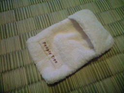 まるが寝てる間にブログ更新!区役所に行く用事があり夫も休みの水曜だったので昨日、バギー&電車デビューしました。刺激的だったせいか、今日はよく寝てくれます。でかけるといっても蒸し暑いし日向はまだ日差しもあり。涼しくして出かけたいところです。バギーに枕用涼感シートを敷き、頭の両脇に保冷剤を置こう、と考え保冷剤を何でくるもうかと思った時に、この6-7年使いあぐねていたこれがリビングの引き出しに所在なさげに2個入っているのを思い出したのでした。もう今は販売してないようですが、これはpeople treeのオーガニックコットンで出来た、袋のようなもの。石けんを入れて体を洗うのに使おうと思って買ったのだけど、それには使えず、あげることもしにくくなんとなくそのままずっと持っていたでした。保冷剤を入れて蓋を折り返して頭の横に置くのにさてもぴったりなものがあったものよ。こういう、やっと本番キターー!っていう感じ、嬉しい。…これ、ほんとうは何のための袋なんだろう。