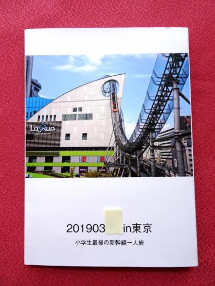 既にブログ・アップしましたが、3月末、三男孫が上京し、その時のフォト・アルバムで、やっと出来上がりました。岩手に住む娘の三男が無事小学校を卒業し、長男や次男の時と同じく新幹線で「一人上京」しました。上京日は小学生料金最後の土曜日「3月30日」、ほんとうに最後のチャンスです。東京駅で三男孫をピックアップに成功、まず丸の内駅舎を案内します。なんと、ここで「東京2020フラッグツアー」のイベント開催前。先を急ぐ我々は見られませんでしたが、小池都知事はじめ、TOKIOのメンバーが登場したようです。この日のコースは、皇居、品川アクアパーク、新橋駅(2日後に「令和号外騒ぎ」)経由でお台場のジョイポリス、浅草寺、修学旅行で訪れるので今回パスの東京スカイツリーを遠くから眺めて終了、夜に息子一家と合流です。翌日は、目黒川の桜、今年の初せりで3億3360万円で史上最高値更新のすしざんまいで昼食、築地本願寺、歌舞伎座や銀座を眺め、東京ドームシティアトラクションズのジェットコースター、東京駅の「果実園」でお茶で終了です。そして、新幹線で岩手へ・・・。・・・有名所を駆け足で回り、疲れました・・・三男孫はもっと、だったことでしょう・・。「一番良かった所は?」の質問に・・・「東京ドームシティアトラクションズのジェットコースター」と・・・。【今日のLife Hack:信念、それは人生を動かす羅針盤のごとき尊いものである。従って信念なき人生は、ちょうど長途の航海の出来ないボロ船のようなものである。- 中村天風 -(日本初のヨーガ行者、天風会の創始者、心身統一法を広める / 1876~1968)】<三男孫の新幹線一人上京のフォトブック、完成><イベント「2020フラッグツアー」の前に・・・><新橋駅前、まさか2日後に「令和号外の騒ぎ」が起こるとは・・><お台場・ジョイポリス><浅草寺「雷門」、同じ頁の下に長男孫と次男孫が上京した時の写真を><目黒川の桜><今年の初せりで3億3360万円で史上最高値更新のすしざんまいで昼食><築地本願寺、歌舞伎座><銀座><東京ドームシティアトラクションズのジェットコースター><東京駅の「果実園」でお茶>