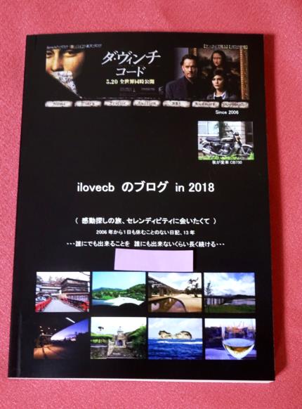 今年も、また我がブログ本が完成しました。タイトルは「ilovecbのブログ in 2018 」です。2006年にブログを始めて13冊目、だんだん頁数が増え、監修担当?の妻から、「無駄に増やして!」と注意されています。初めの頃は1ヶ月分を10頁に纏め全130頁位でしたが、2016年版は234頁、2017年版は236頁、2018年版は266頁、はじめた頃の倍に増えてしまいました・・・。(笑)・・・本が厚い分、充実した年だったと解釈して・・・。(笑)2018年の主な旅は・・・①1月:四万温泉「積善館」、②4月:鳥取「砂丘」・島根「足立美術館庭園」、③5月:奄美大島「あやまる岬」「田中一村美術館の前の通り」、④6月:玉子湯旅館、⑤6-7月:青森・鶴の舞橋、⑥9月:長崎・五島列島、⑦9月:中国・福州、⑧10月:中国・福州、⑨10月:和歌山・南紀白浜、⑩12月:初雪の新発田、⑪フランス「ベルサイユ」「モンサンミッシェル」「ルマン」「凱旋門」・・。生なま有名人は56人・・・2/3阿武松☆、阿武咲☆、勢☆、片山さつき☆、ヨネスケ☆、岡田茉莉子☆、長谷直美☆、川野太郎☆、マーティー・フリードマン☆、山内恵介☆、中村玉緒☆、平原綾香、東てるみ、安倍里葎子☆、M高史☆、山田太郎☆、4代目三遊亭金馬☆、青空たのし、木曽さんちゅう、斎藤こず恵☆、アニマル浜口(平吾) ☆、 浜口京子☆、松島トモ子☆、 内海桂子☆、林家三平☆、西尾夕紀☆、 林家正蔵☆、ファイティング原田☆、 2/25小池百合子、設楽悠太(東京マラソン日本新) ☆、4/14ロリー・クインタレッリ、脇阪寿一、新井康久、安東弘樹、中嶋貴一、5/19黒木瞳、吉田鋼太郎、大野拓朗、六角精児、清塚信也、7/14田辺靖雄☆、こまどり姉妹☆、ボニー・ジャックス・鹿嶌武臣☆、九重佑三子☆、大川栄策☆、原田直之☆、あべ静江☆、合田道人、7/26銅谷志朗☆、8/7丘みどり、8/25なぎら健壱、10/14渡辺直美、安田菜津紀、古田大輔、11/11武田双雲、11/17千住真理子。今どき、紙の本・・・ですが・・・紙の本、以外はもう一つ信用できなくて・・・。(笑)レコード、カセットテープ、ベータ、VHS、8mm、ワープロ、フロッピーディスク、装置がないと再生できず・・・CD、DVDも100年経てば・・・。テクノロジーの急速な進化によってストレージフォーマットがあっという間に廃れてしまい、さまざまな記憶媒体に保存されている文書やデータが消失してしまう「デジタル暗黒時代」の到来ともいわれています。法隆寺に保存されていた百万塔陀羅尼(ひゃくまんとうだらに)が年代を確定できる最古の木版印刷物とされていて、優に1000 年を超える保存実績かと思います。ただし、これほど長くもったのは「和紙だからこそ」ともいわれています。やはり1000年もつのは、紙に鉛筆書き・・和紙に墨書き!でしょうか・・・。母も、読めますし・・・。さて、作り方ですが・・・毎年12月末にブログを書き終えると本づくりを始めます。まず1年分のブログ本文と画像をコピーしワードに貼りつけ、画像の取捨選択で減らし、仮面を剥がして顔出し画像に入れ替えし準備完了です。・p1:表紙はその年の芸術的な傑作?画像を選んで構成。・p2~5:左が偶数頁、右が奇数頁で、目次は3ヶ月分を1頁に計4頁に纏め、脚下に表紙と裏表紙に載せた写真の解説を記入。・p6~:本文は左頁から開始し右頁で終わる様に、1か月分の頁数は偶数に纏めます。 (この原稿の増減調整が大変で、時間を要します)・最後(左頁開始・右頁で終了):その年お会いした有名人の写真。・プロフィール(奇数頁):自己紹介、毎年1冊ずつ増えるブログ本を含む著書など。・裏表紙(偶数頁):その年の主な出来事の画像貼りつけ。ワード原稿が完成したら、それをPDFに変換し印刷屋さんへ送ります。当然、校正も私が担当するので、PDF原稿通りの本になります。ネットで探した印刷屋さんですが、良心的で、請求に対し、多めに振込むと、それを積算していて、次の依頼時に差し引いた数字、1円単位で相殺され不足分のみ請求の律儀な印刷屋さんです。有り難いことです。新聞等に、「自分史を作りませんか」の広告を載せ、会って話を進めると、「車1台分位かかりますね」と言われたB社とは雲泥の差かと思います。こちらの印刷屋さんを知らなければ、私の自費出版という夢が叶わなかった旨を形にして、以前心ばかりの品を送ると、御礼の電話があり、初めて社長さんとお話しさせて頂きました。素敵な方です。今後とも宜しくお願い致します。FM ilovecbところが・・・最近、この印刷所から廃業する旨のメールが届きました。考えに考えたあげくの結果でしょうが、困りました。新しい印刷所を探さねばなりません・・・。【今日のLifeHack一羽のツバメが来ても夏にはならないし、一日で夏になることもない。このように、一日もしくは短い時間で人は幸福にも幸運にもなりはしない。- アリストテレス -(古代ギリシアの哲学者 / 紀元前384~前322):】<「ilovecbのブログ in 2018」、完成!><2006年にブログをはじめ、今回で13冊目><目次>