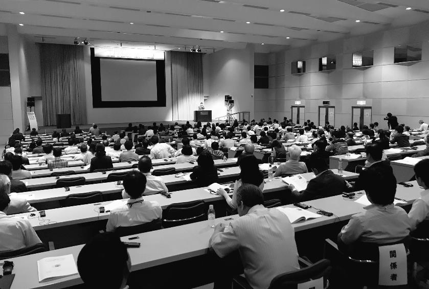 厳重な警備のもと山本環境大臣が登場され、開会のご挨拶から始まった、このシンポジウム。