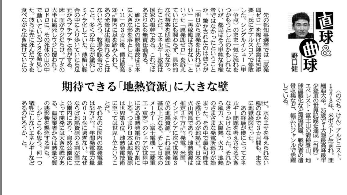 ソーラーが天候に左右され、きれいな山の美観を損ね、10年前とは考えが少し変わってきたように思います。