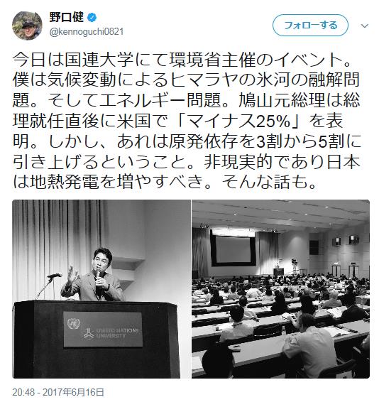 そして、次の特別講演はお目当てのアルピニスト・野口健さん、演題は「地球温暖化問題について」です。