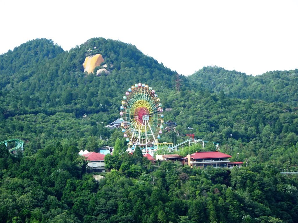 先ほど遊覧船から眺めた風景が眼下に広がり、遠くの遊園地の観覧車もはっきり見えます。