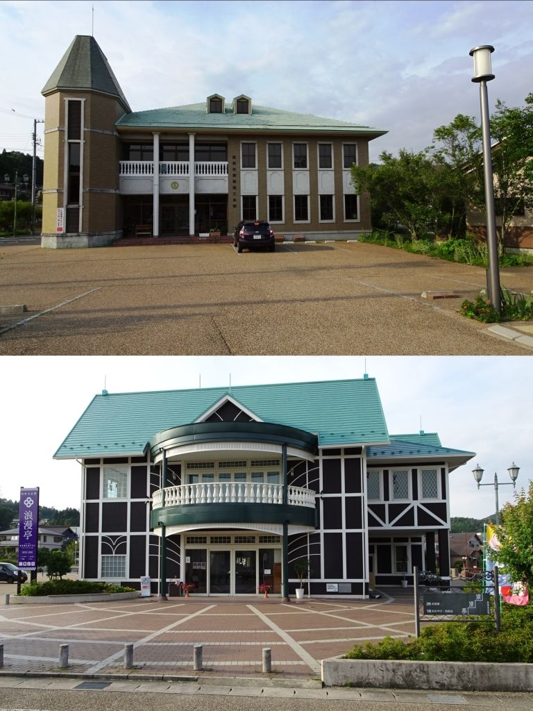 街中に入ると、大正村のシンボル・浪漫亭や恵那市恵南商工会館が見えます。