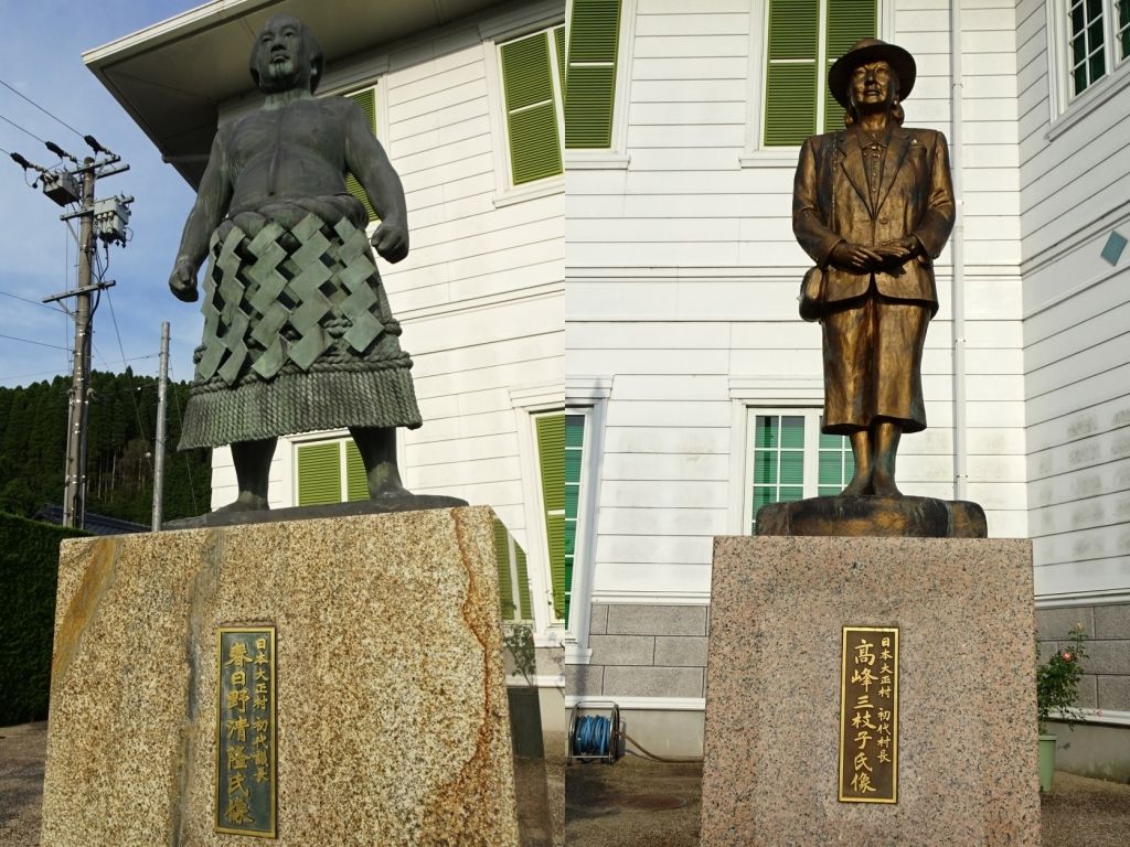 更に頂上付近には「大正ロマン館」があり、建物をバックに左手に春日野清隆像、右手にと高峰三枝子像が立っています。ここも時間外で入れませんでした・・・。