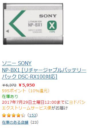 SONY純正リチャージャブルバッテリーパック「NP-BX1 」はお高くヨドバシカメラの通販でも本日の値段が5,950円円、Amazonでも1個3980円です。