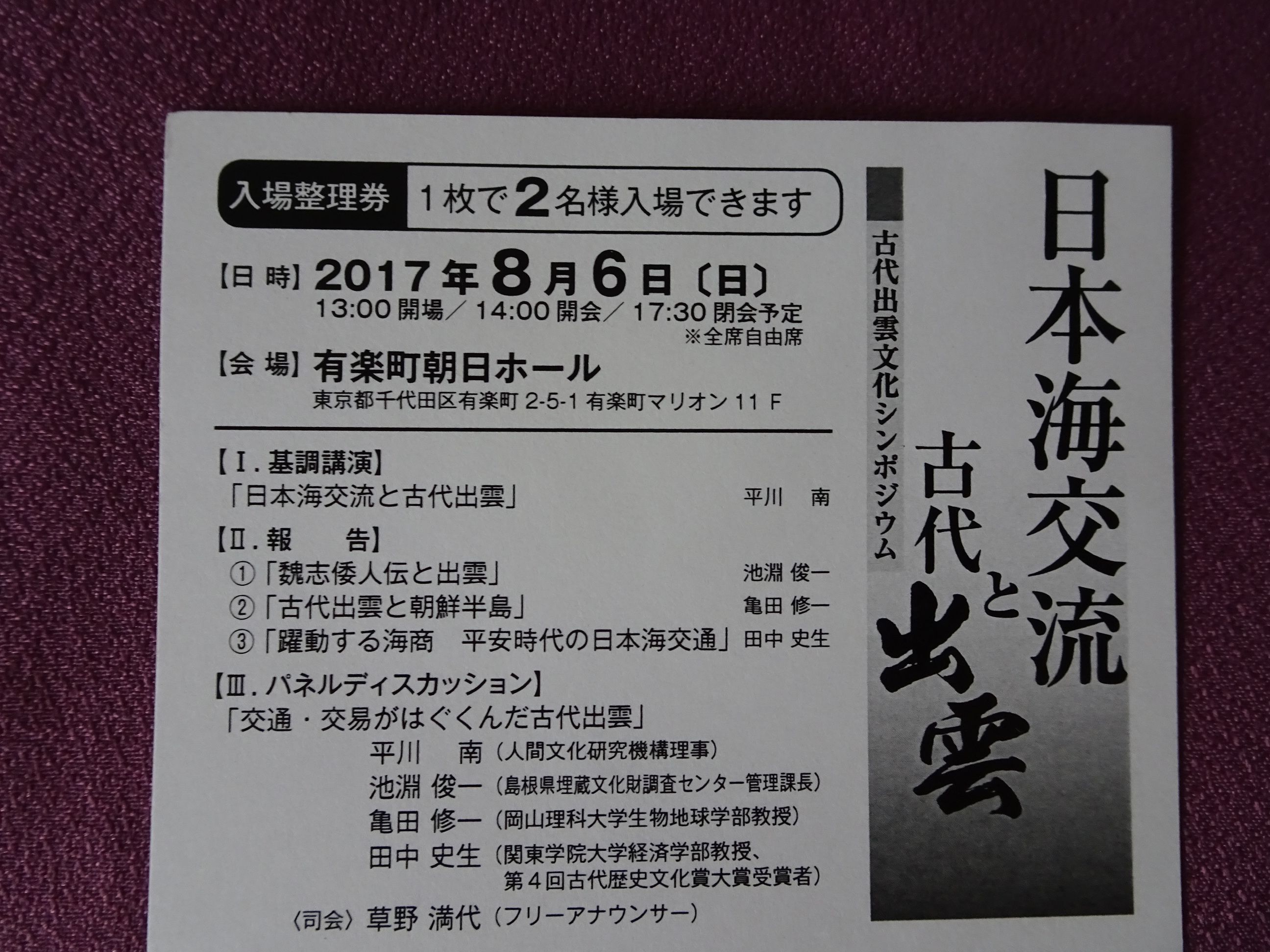抽選に当たり、有楽町朝日ホールで開催の「古代出雲文化シンポジウム~日本海交流と古代出雲」へ行ってきました。
