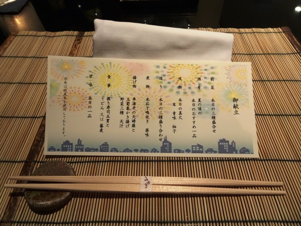 20時半、和食「みゆき」を訪れ、窓際の席に案内です。