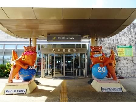 羽田8時25分発、那覇で乗り換えに2時間を要し14時20分に久米島空港に無事到着です。