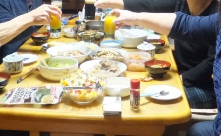 夕方、弟が来て、テーブル上に用意された沢山の料理を囲み、兄弟・姉妹会のはじまりです。