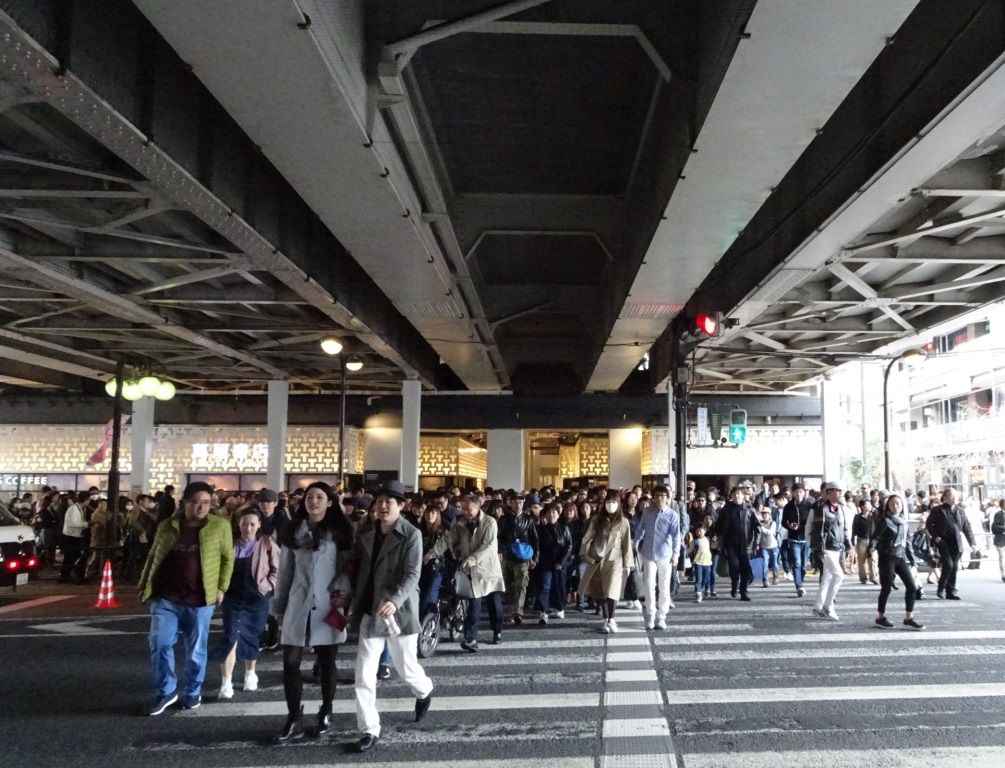 中目黒駅に着くと混んでいます。想像を絶する混みようです。