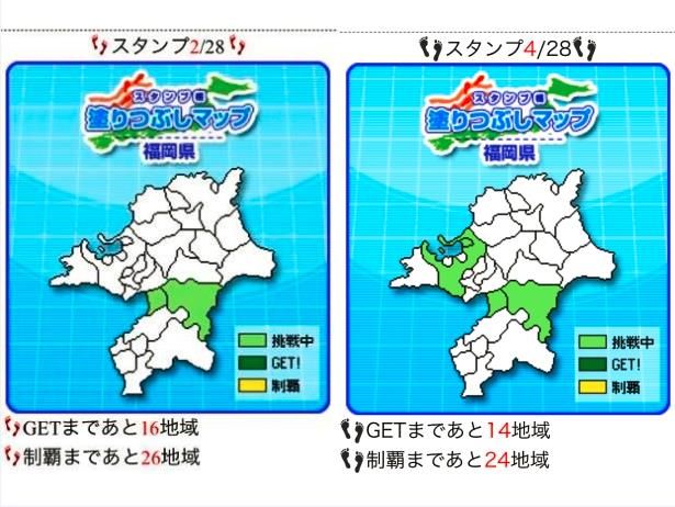 <コロプラ訪問先塗り絵「福岡県」、ビフォ・アフタ>