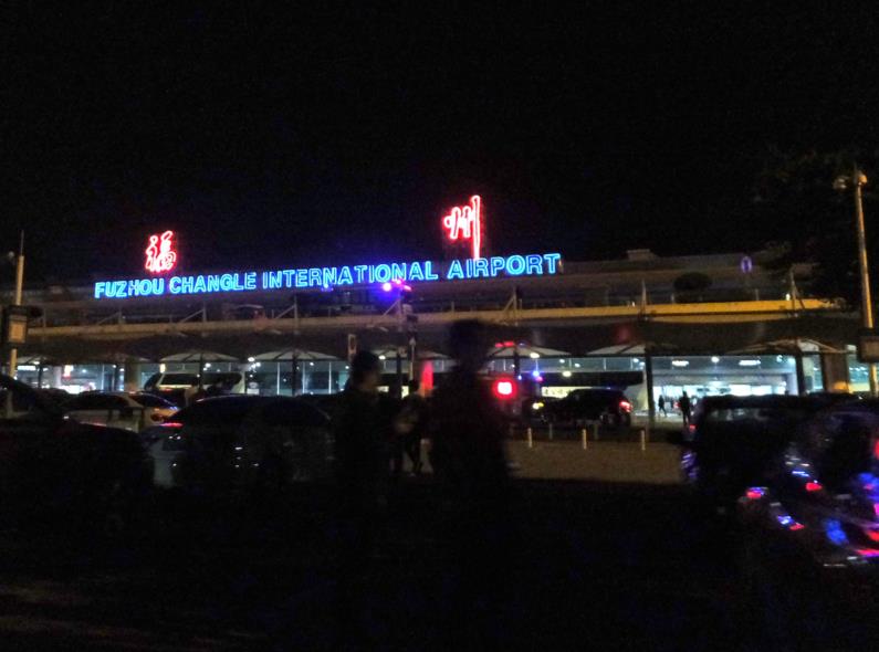 約4時間のフライトを終え、時差1時間で現地時刻18時半に無時、福州長楽空港に到着です。