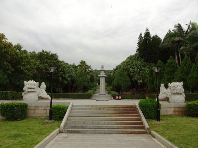 洪武二十三年(1390)までは堂内に鎮座していましたが、御堂が崩壊して露座になり、像の周りに建つ10本の石柱は崩壊消失した御堂の遺構です。