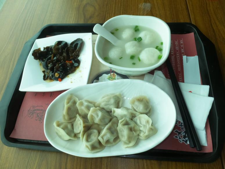 朝食がまだだったのに気づき、お土産を買った残りの人民元で食べられる品を注文します。
