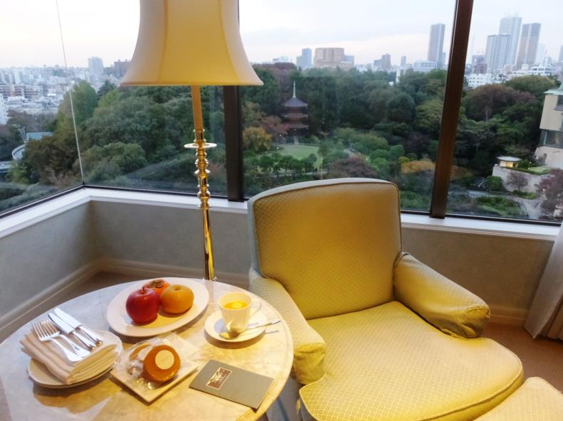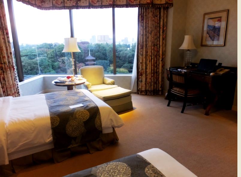 今回、無料招待なので文句は言えないのですが、なんと、アップ・グレードでガーデン・ビューのお部屋です。お庭の三重の塔が見えます。