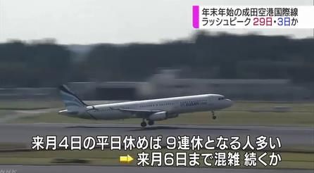 <年末年始 成田空港国際線 出国29日 帰国来月3日がピークか>NHKニュース